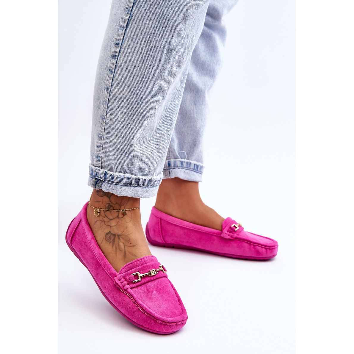 Detalii: Mocasini clasici din piele intoarsa pentru dama, roz Corinell