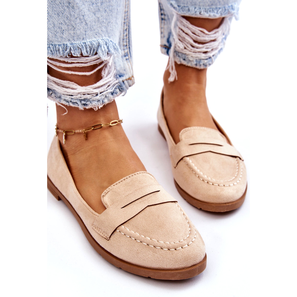Detalii: PS1 Mocasini confortabili de dama din piele intoarsa Bej Lucca