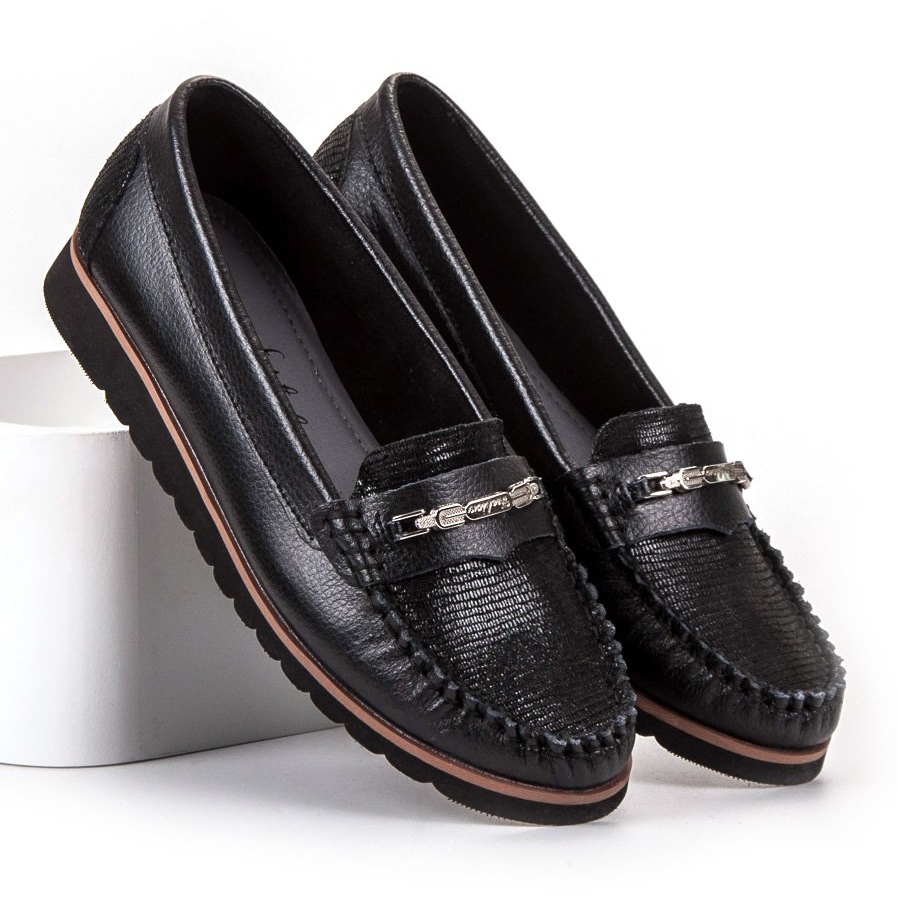 Mocasinii din piele confortabili Filippo, negri, sunt o propunere ideală pentru femeile care prețuiesc eleganța și confortul în fiecare zi. Acești mocasini clasici sunt confecționați din piele naturală de înaltă calitate, care asigură o potrivire perfectă pe picior și elimină eficient umezeala, asigurând confort atunci când sunt purtate perioade lungi de timp.