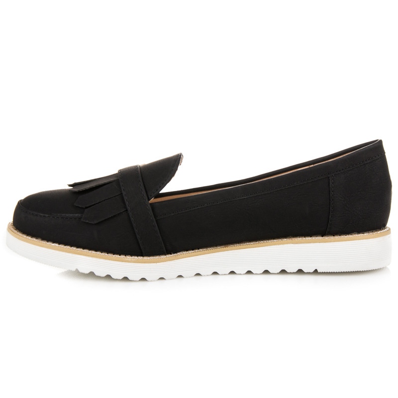 Mocasinii sunt confectionati din piele ecologica de inalta calitate, ceea ce le garanteaza durabilitatea si usurinta intretinerii. Interiorul pantofilor este finisat cu piele naturala, ceea ce asigura confortul la purtare, chiar si pentru ore lungi. Varful rotund adauga subtilitate, iar catarama decorativa rupe linia uniforma, conferind caracterului modelului. În plus, franjuri completează perfect întregul aspect, oferind întregului lucru lejeritate și o notă la modă.