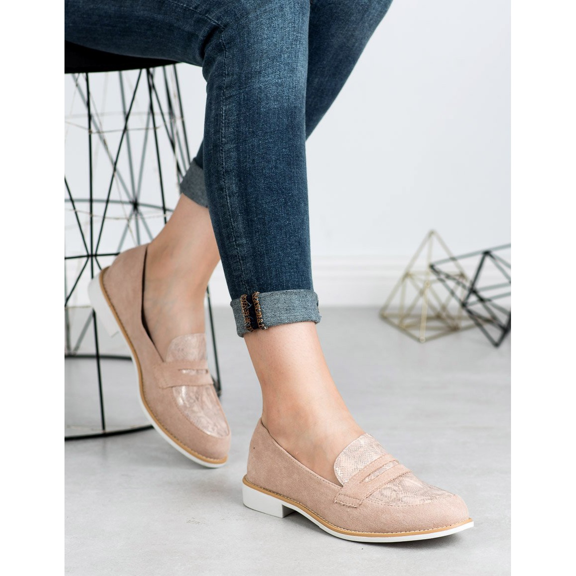 Detalii: Bestelle Mocasini cu imprimeu șarpe roz