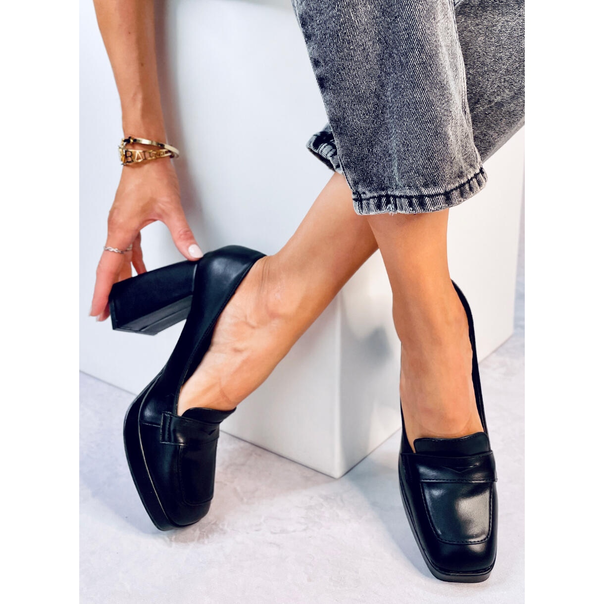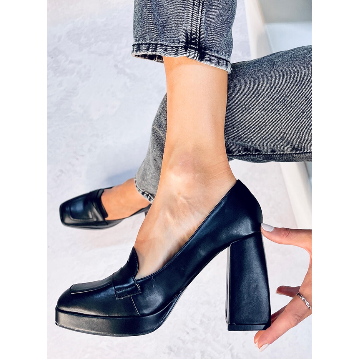 Un toc inalt de 10,5 cm, sub forma unui stalp stabil, ofera o sustinere exceptionala si alungeste optic picioarele, punand in valoare silueta feminina. Mocasinii sunt confectionati din piele ecologica de inalta calitate, ceea ce nu numai ca le ofera un aspect modern, dar ii face si prietenosi cu mediul. Potrivite pentru picioarele subțiri, aceste pompe oferă un confort excepțional oriunde te duci.