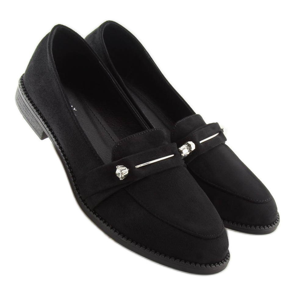 Mocasinii negri de dama 3117 Black sunt o alegere ideala pentru femeile care apreciaza eleganta si confort. Acești pantofi clasici se remarcă nu numai prin designul lor minimalist, ci și printr-un decor subtil cu pietre, care le conferă un caracter unic. Detaliul argintiu atrage atenția, adăugând o notă de glamour întregului.