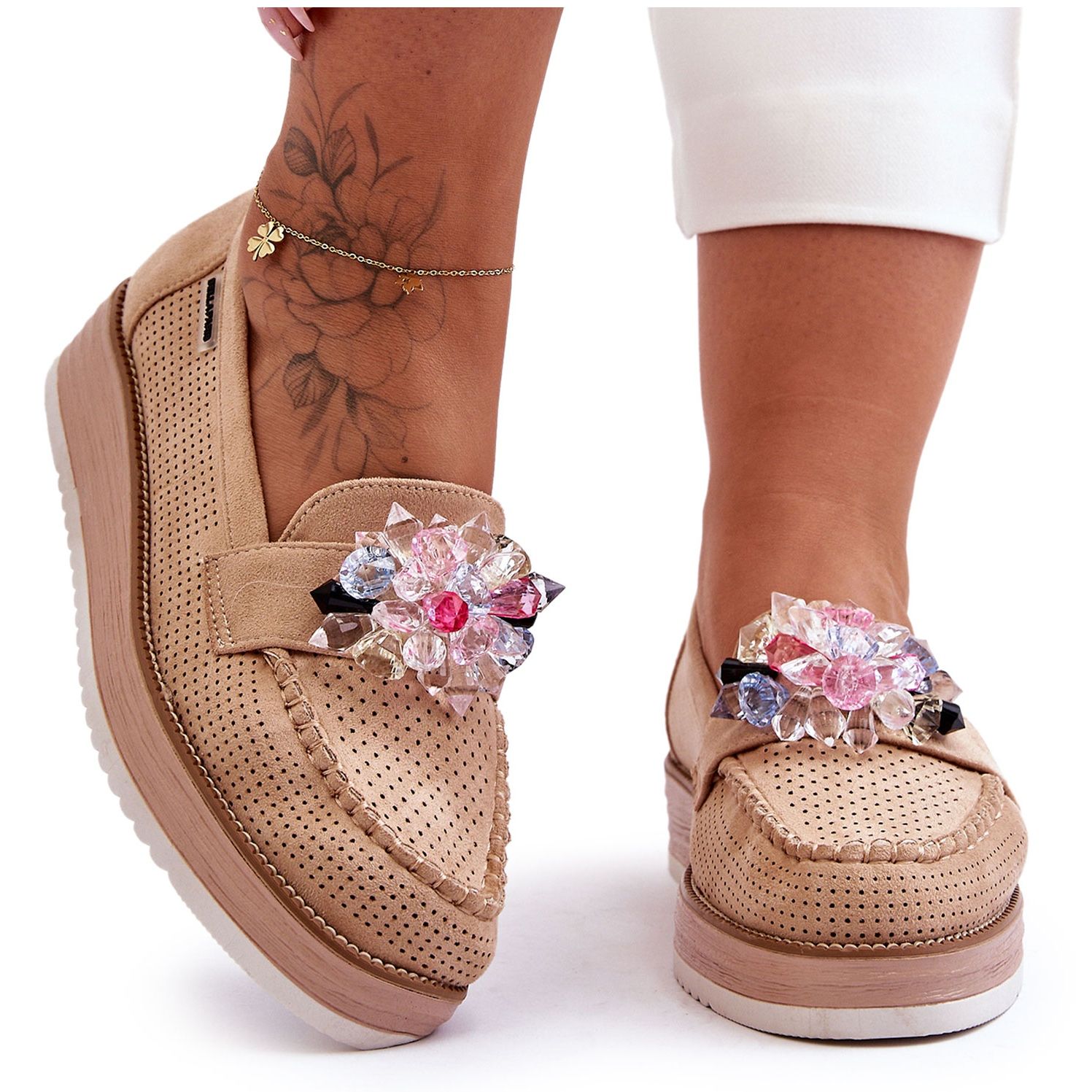 Detalii: PM1 Mocasini Dama Platforma Cu Pietre Bej Elonore