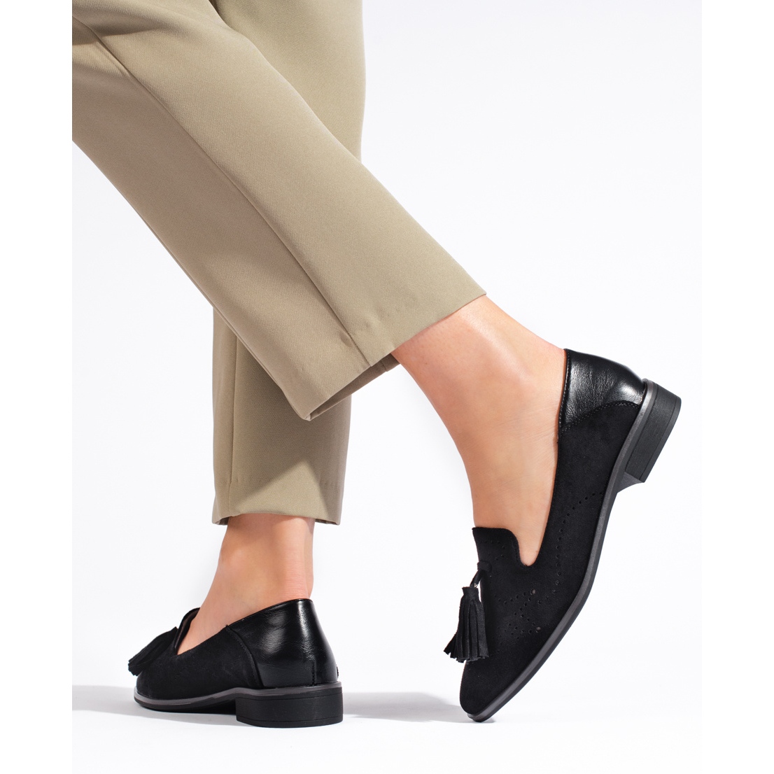 DASZYŃSKI Mocasini Daszyński din piele intoarsa neagra ajurata negru