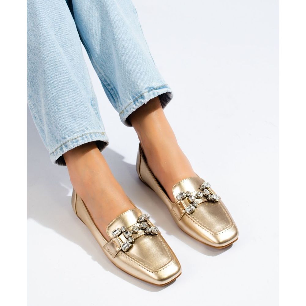 Mocasini de dama aurii cu decor Shelovet - Eleganta la fiecare pas