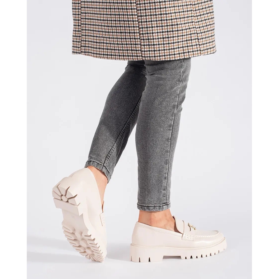- Model: Mocasini de dama bej pe platforma