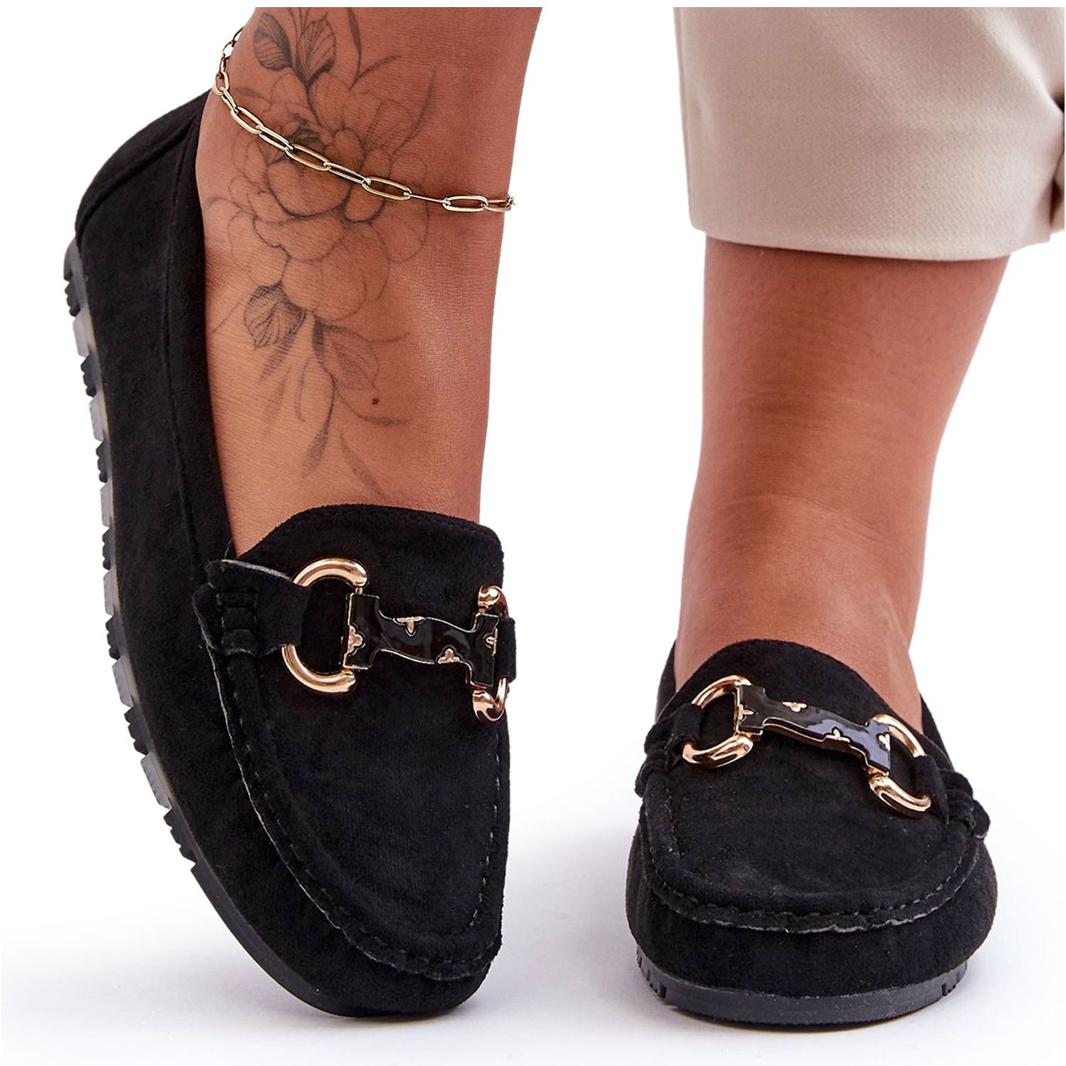 PG1 Dionira - Suede Loafers pentru femei cu un ornament, negru