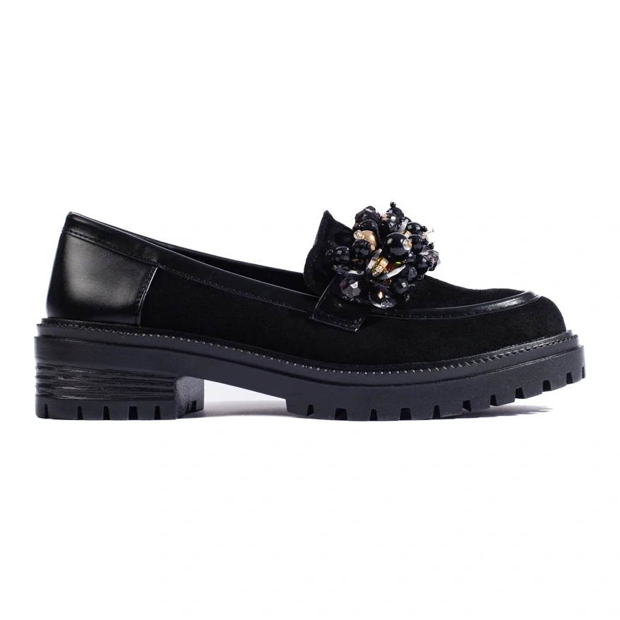 Elegant și confortabil - mochetele Black Shelovet sunt o propunere pentru femeile care apreciază combinația stilului urban cu confortul purtării. Fabricat din piele ecologică într -un finisaj din piele de căprioară, cu un accent delicat sub formă de zirconiu, va funcționa atât pentru stilizări de zi cu zi, cât și pentru mai elegante.