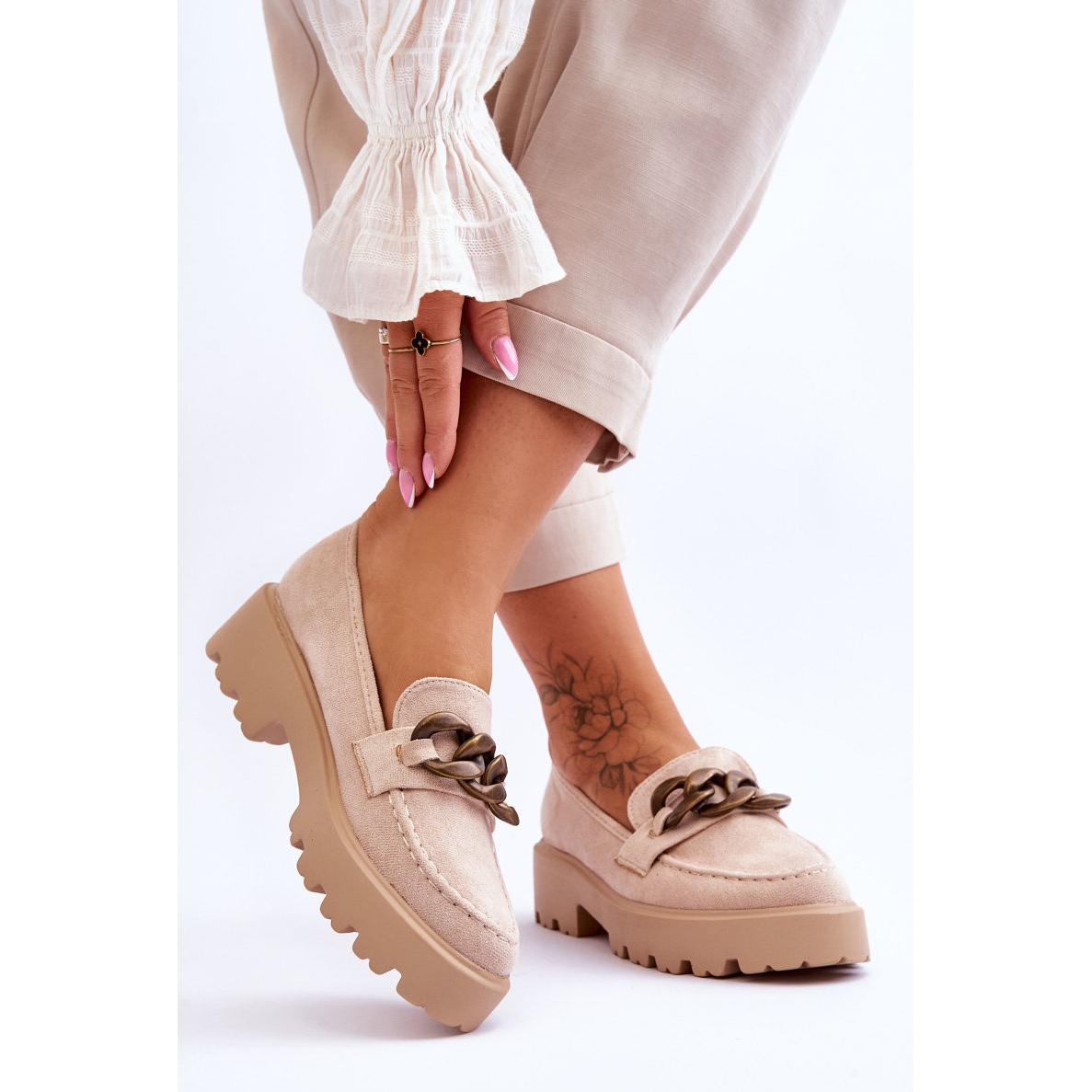 - Caracteristici suplimentare: lanț decorativ, călcâi ușor rigidizat