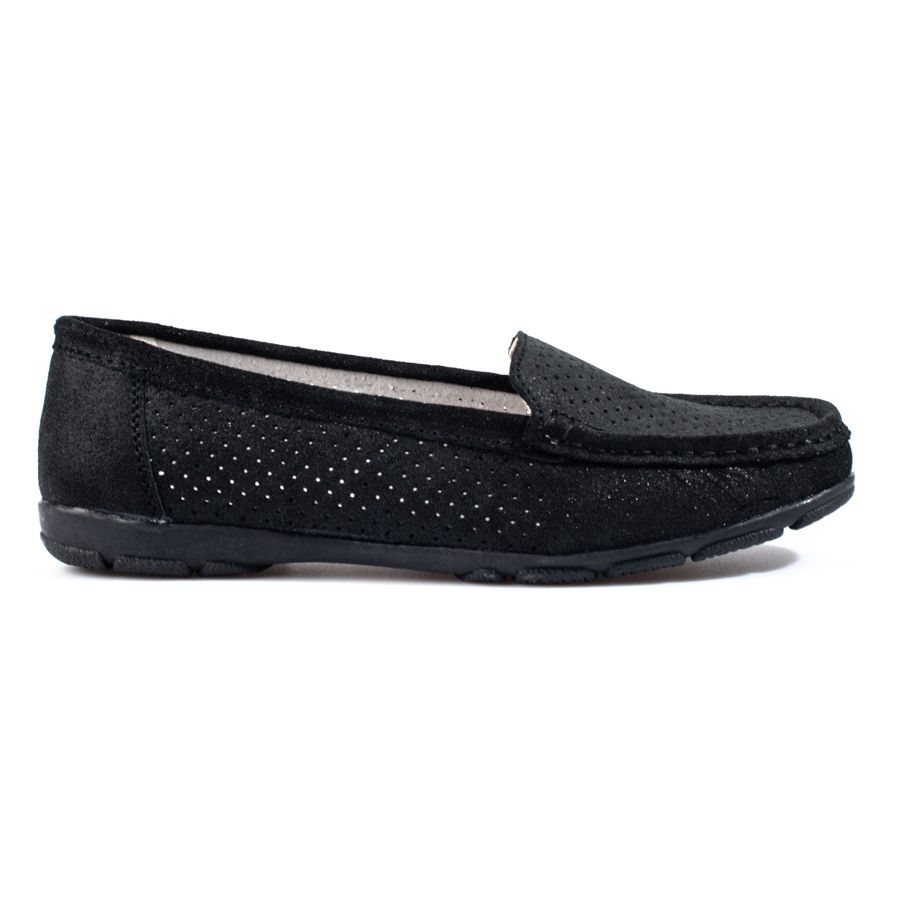 Vinceza Black Piele Loafers - o combinație de clasici și confort. Realizat în întregime din piele naturală (superioară, interior și inserție), în negru elegant, cu inserții decorative deschise. Nasul clasic, rotund și fermoarul introdus asigură o punerea rapidă, iar călcâiul moale construit stabilizează piciorul și crește purtând confort.