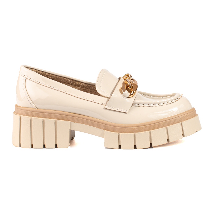 Detalii: Mocasini de dama lacuiti cu lant Shelovet bej