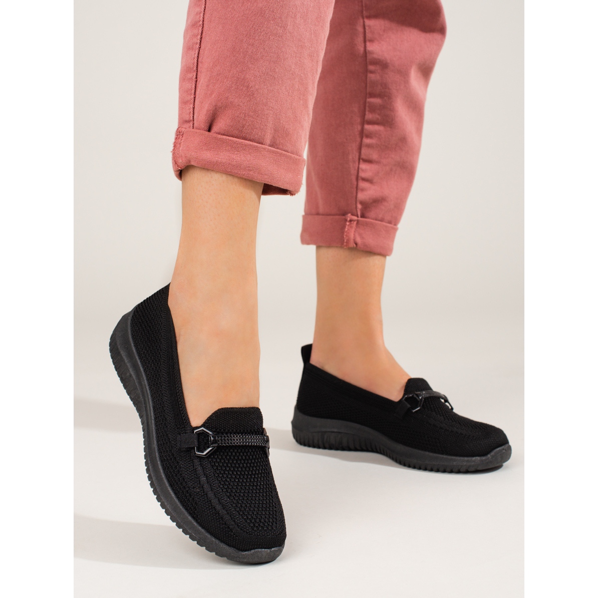 - Model: Mocasini negri de dama din material textil