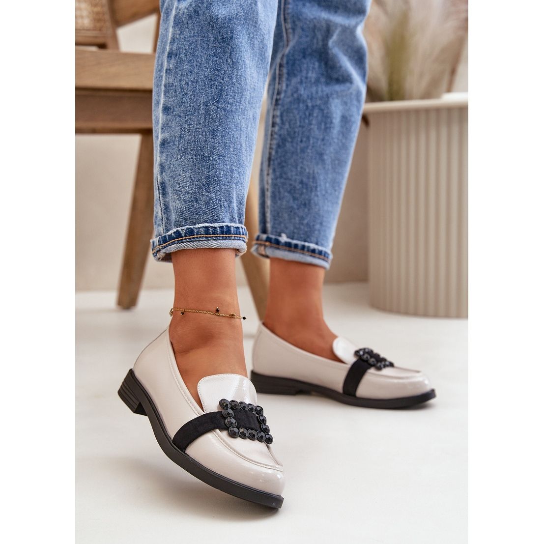 Prezentăm mocask -uri pentru femei lăcuite cu un ornament într -o culoare elegantă gri deschis, modelul Vinceza 58389. Aceste mochete extrem de elegante sunt o combinație perfectă de clasici și modernitate, care vor funcționa în fiecare garderobă. Fabricate din piele ecologică de înaltă calitate, acestea garantează durabilitatea și confortul purtării, ceea ce le face alegerea perfectă atât zilnic, cât și pentru ocazii mai formale.