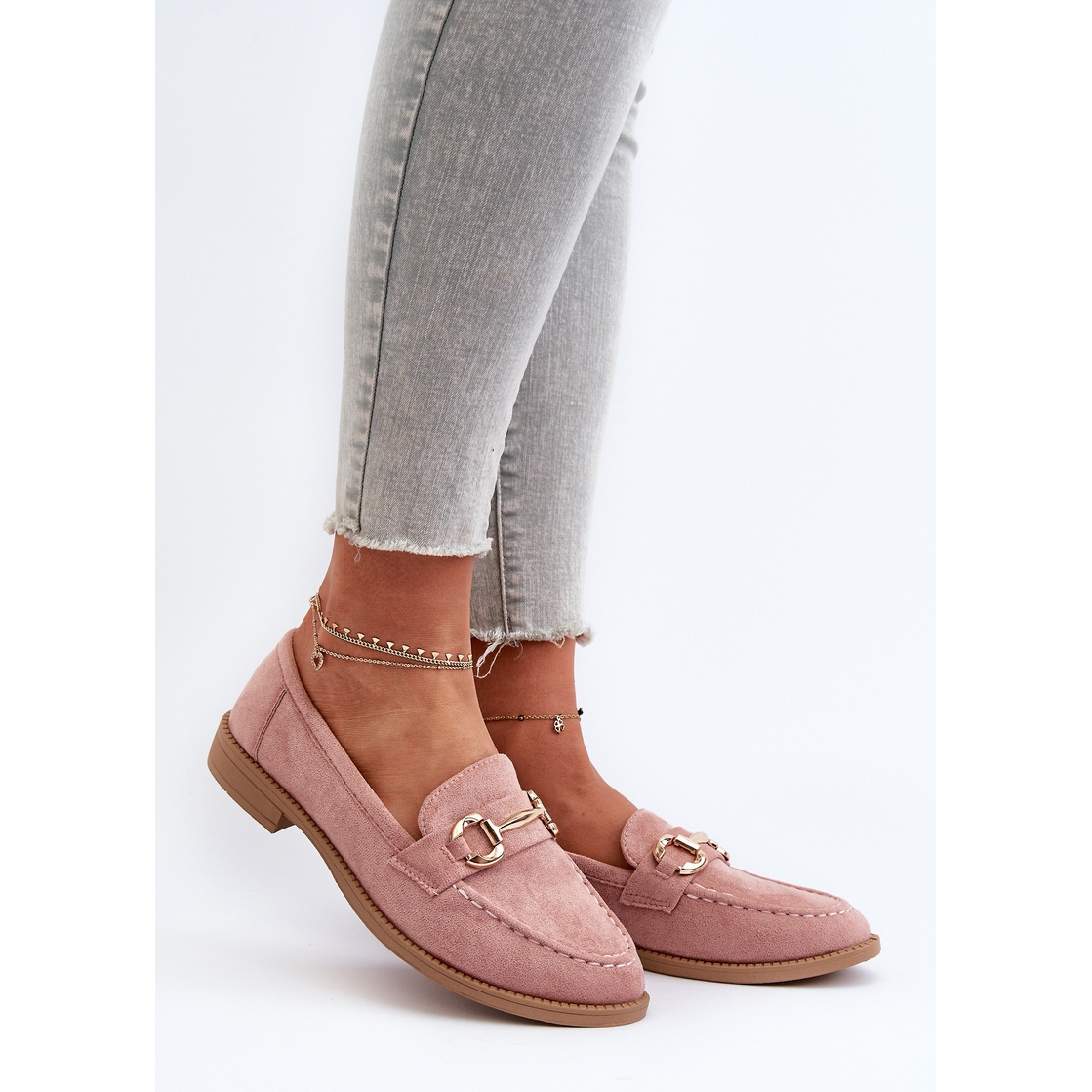 Inna marka Mocasini De Damă Toc Plat Cu Decor Roz Aviole