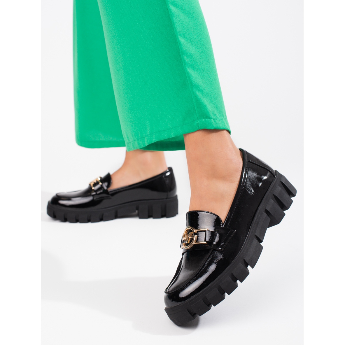 Vinceza Mocasini de dama Vinceza cu platforma lacuita neagra negru