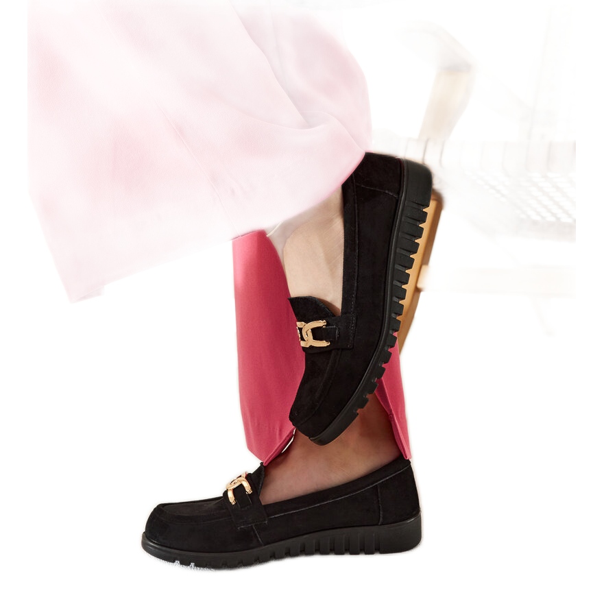 Pentru a rezuma, mochetele de piele de căprioară neagră cu sardisul care trebuie să aibă cataramă în dulapul fiecărei femei la modă, oferind zilnic eleganță combinată cu un confort extraordinar de purtare.
