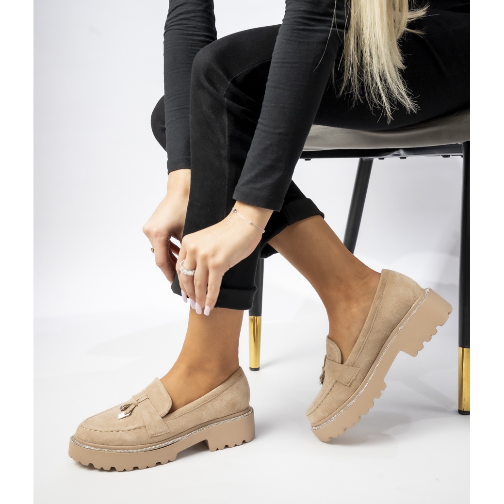 Fabricate din piele din piele de căprioară de înaltă calitate, mochetele nu numai că oferă o potrivire perfectă a piciorului, ci și moale, datorită căreia purtarea și pe termen lung devine o plăcere. O talpă groasă și retrasă în culoarea bej este o garanție a stabilității pe diverse suprafețe, ceea ce le face alegerea perfectă atât zilnic, cât și pentru ocazii speciale.