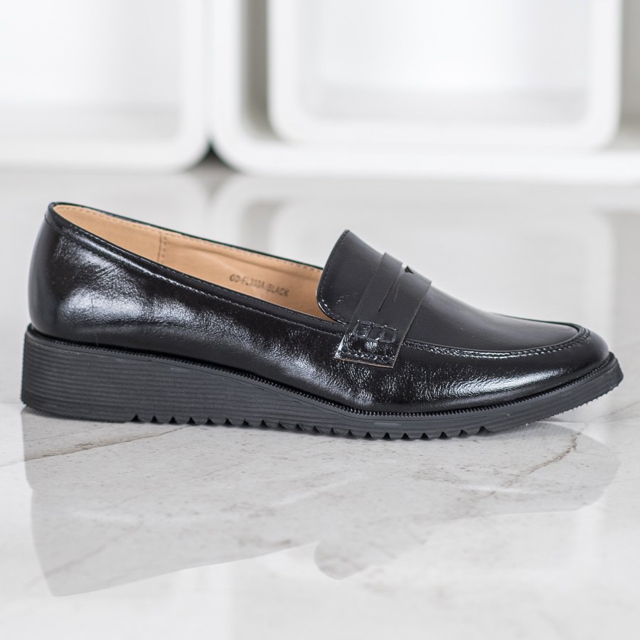 Descoperiți eleganța și confortul cu mocasinii de damă Goodin în negru. Acești pantofi stilați, din piele lacuită de înaltă calitate, îmbină perfect designul clasic cu tendințele moderne. Datorită suprafeței netede, negre, mocasinii se potrivesc perfect atât în stilul de zi cu zi, cât și în stilul mai formal, ceea ce îi face o alegere excelentă pentru muncă și diverse sărbători.