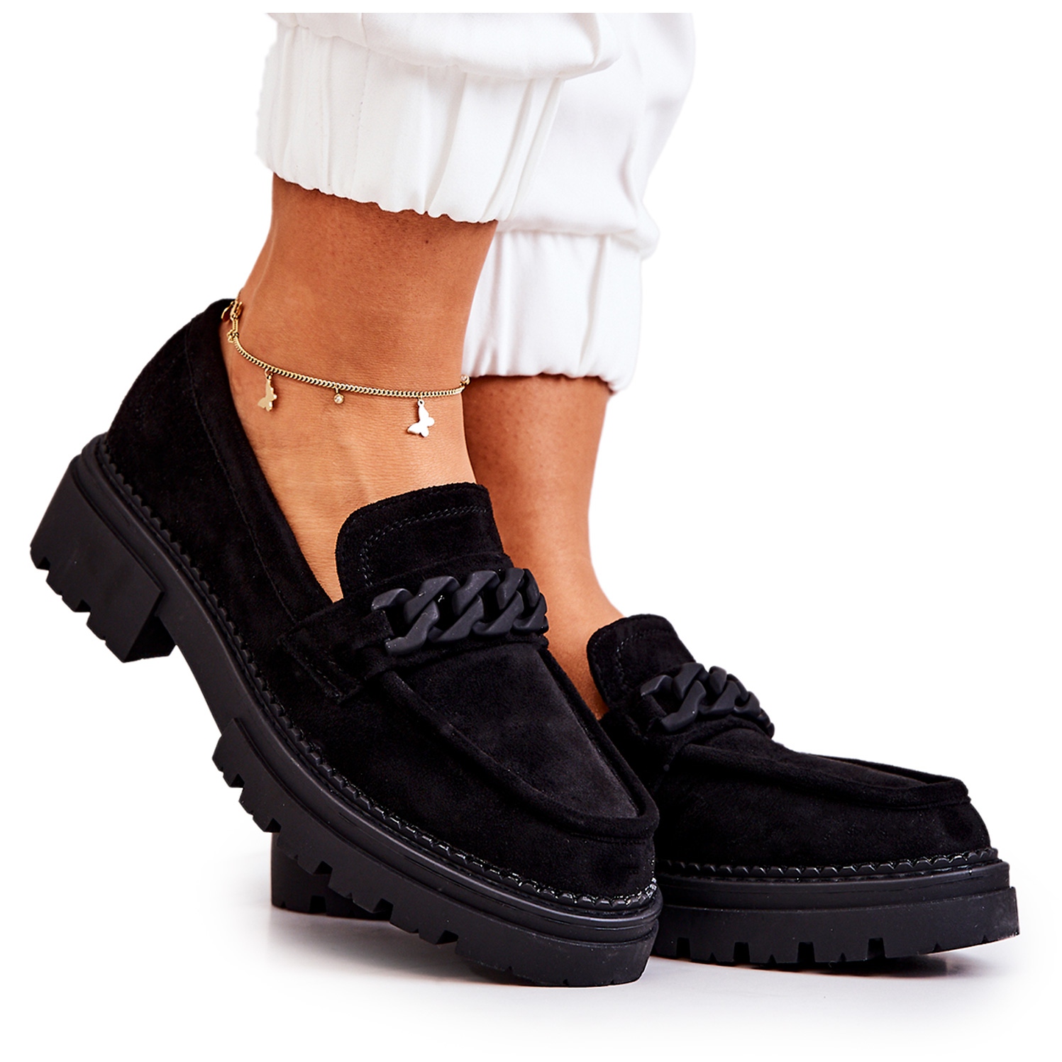 Un avantaj suplimentar este decorul impresionant sub formă de lanț, care le conferă un caracter unic, permițându-vă să creați multe stiluri încântătoare atât pentru muncă, cât și pentru întâlniri sociale. Datorită talpii înalte și tocului de 4 cm, acești pantofi nu numai că prelungesc silueta, ci oferă și un sprijin stabil în timpul mersului.
