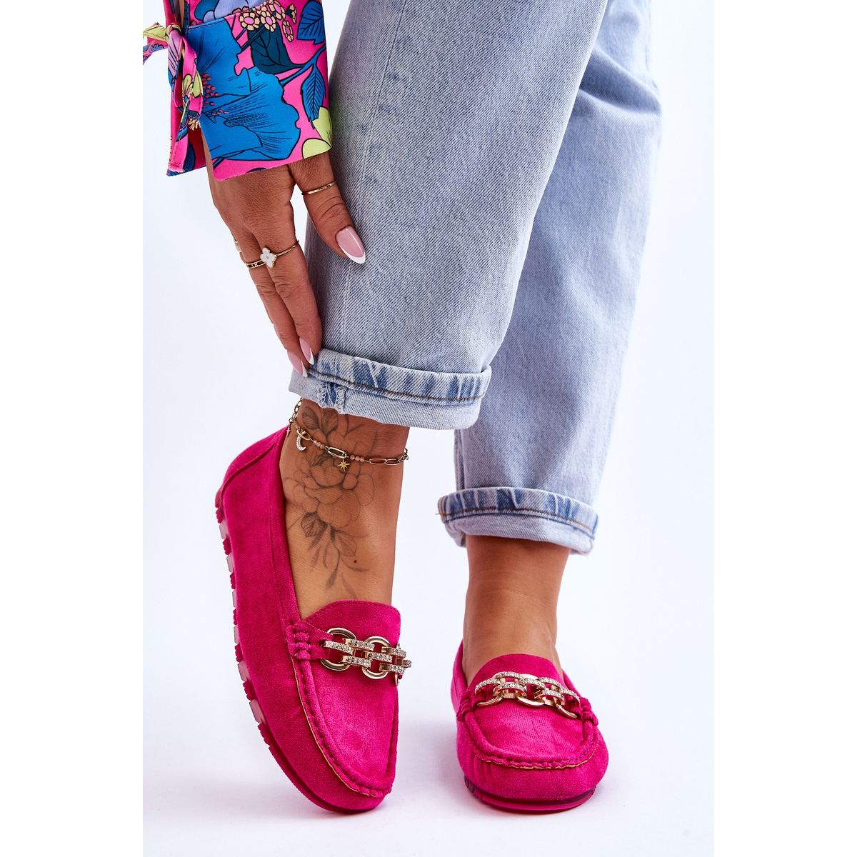 Căutați în fiecare zi mocasini confortabili și eleganți? Modelul Sorento din Fuchsia intensă este o combinație de eleganță și confort urban. Fabricat din Eco Suede, decorat cu un lanț subtil, cu strasuri și zirconi, atrage aspect și, în același timp, rămâne practic datorită talpei de cauciuc non -all.