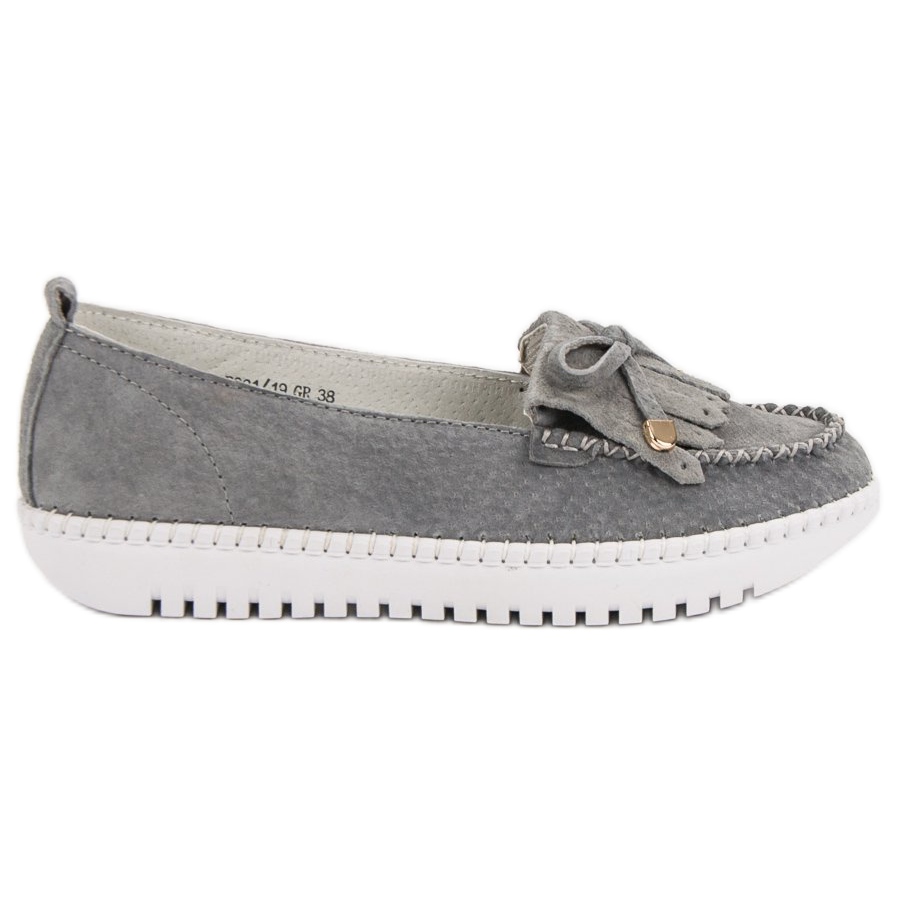 Mocasinii Filippo se disting printr-o culoare gri, discretă, care se va potrivi perfect într-o varietate de stiluri - de la cele de zi cu zi la ceva mai elegante. Un avantaj suplimentar sunt detaliile atrăgătoare precum franjuri și fundă, care conferă pantofilor originalitate și farmec.