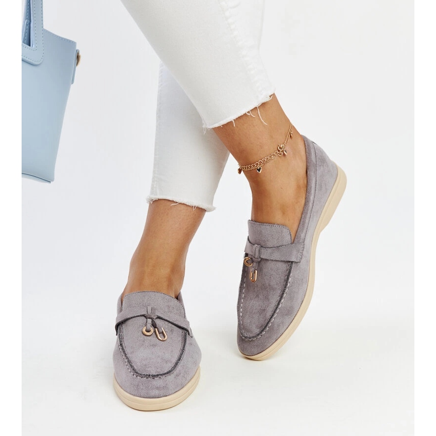 Inna marka Mocasini gri cu pandantiv metalic de la Fiorano