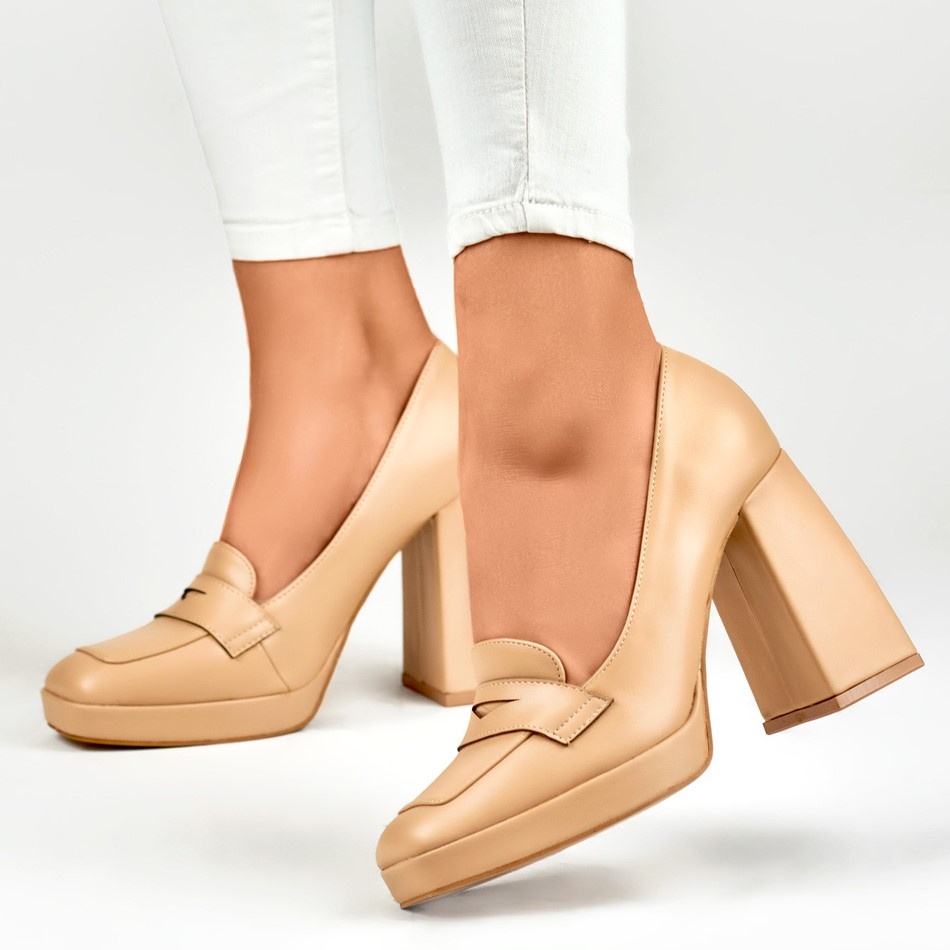 Detalii: Mocasini la modă pe un stâlp înalt și lat bej