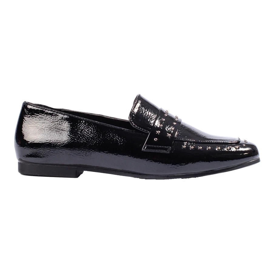 Licee elegante La.Fi Loafers în negru clasic - confecționat din piele ecologică lăcuită cu strasuri decorative. Combinația de confort casual și finisaj elegant le face perfecte atât zilnic, cât și pentru ieșiri solemne.