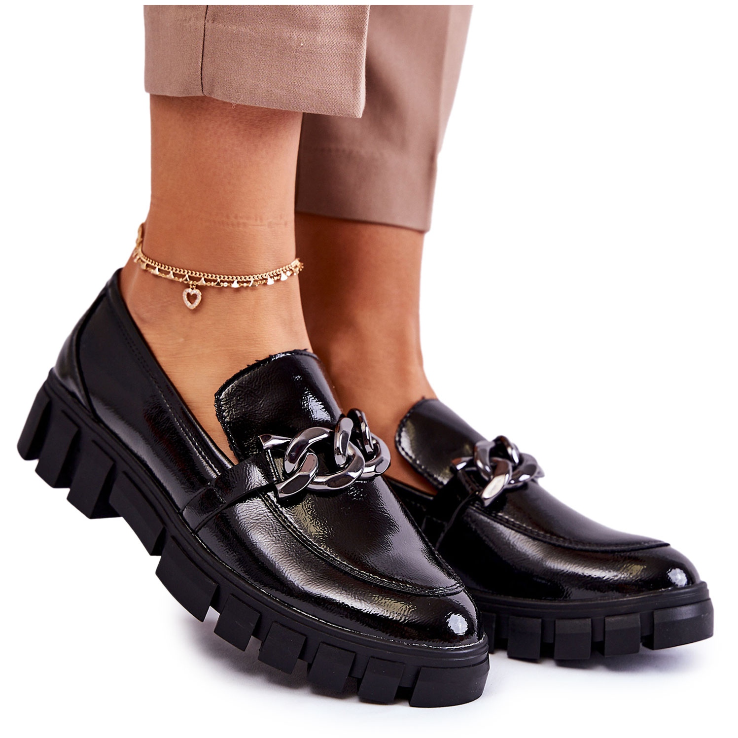 Mocasinii cu patent Sergio Leone pe platformă sunt o propunere elegantă pentru femeile care apreciază combinația dintre stilul clasic și modern. Realizați din piele ecologică lăcuită, acești pantofi negri sunt perfecti pentru stilul de birou și întâlnirile sociale. Designul lor slip-on le face ușor de îmbrăcat, iar vârful rotund adaugă un farmec subtil.