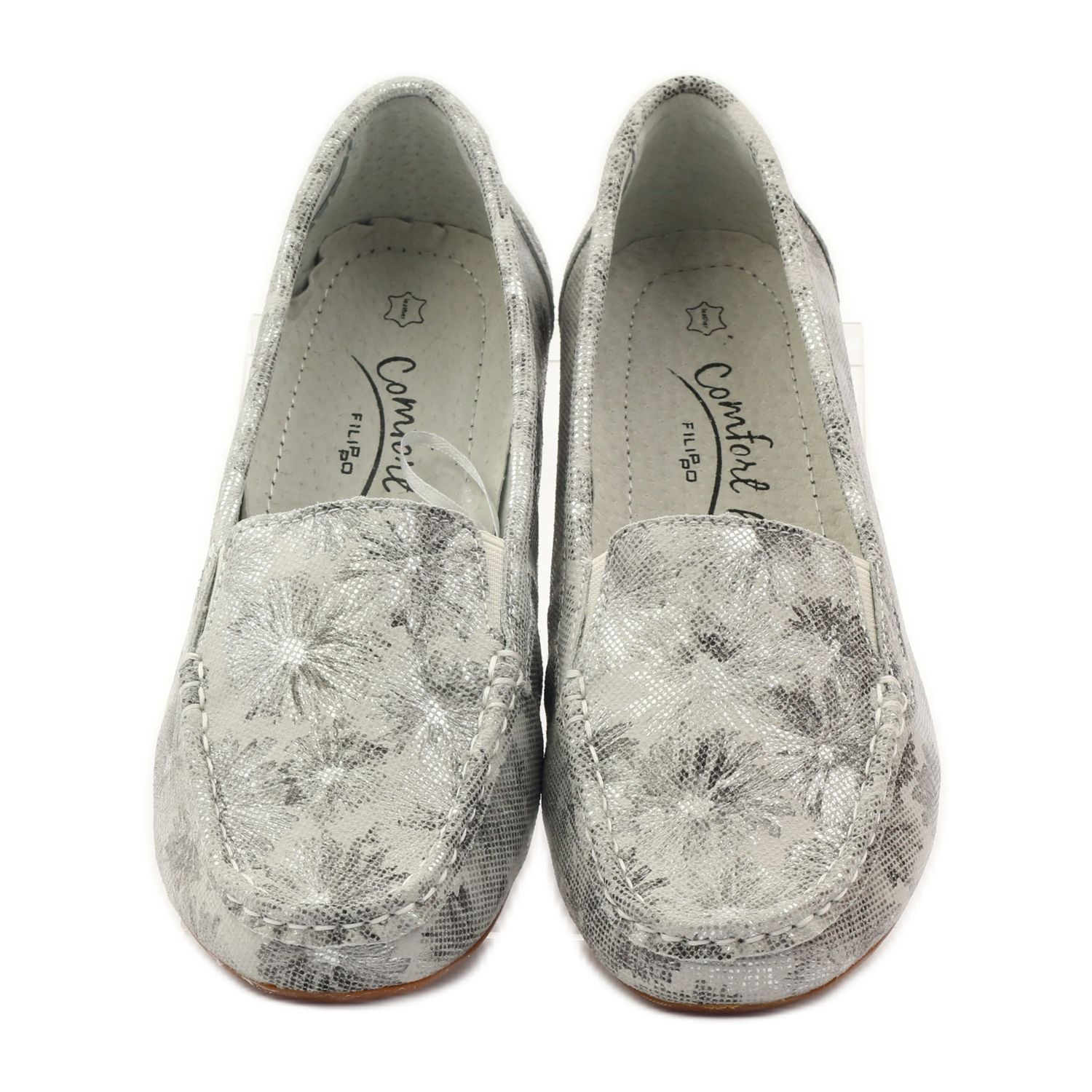 Descoperiți farmecul și confortul cu mocasinii de damă Filippo Lordsy F 006 într-o nuanță de gri. Acesti pantofi eleganti vor deveni cu siguranta un element indispensabil al garderobei tale de primavara si vara. Se caracterizează printr-un model floral unic care va adăuga prospețime oricărui stil.