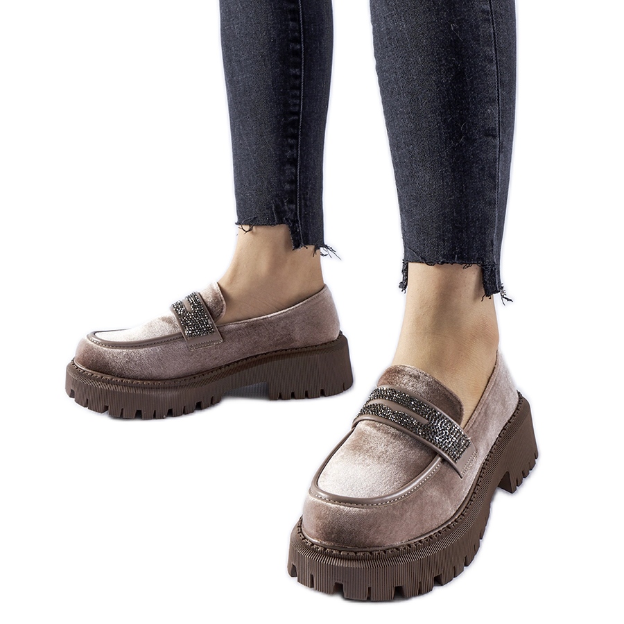 Inna marka Mocasini maro decorati cu strasuri Longuelo bej