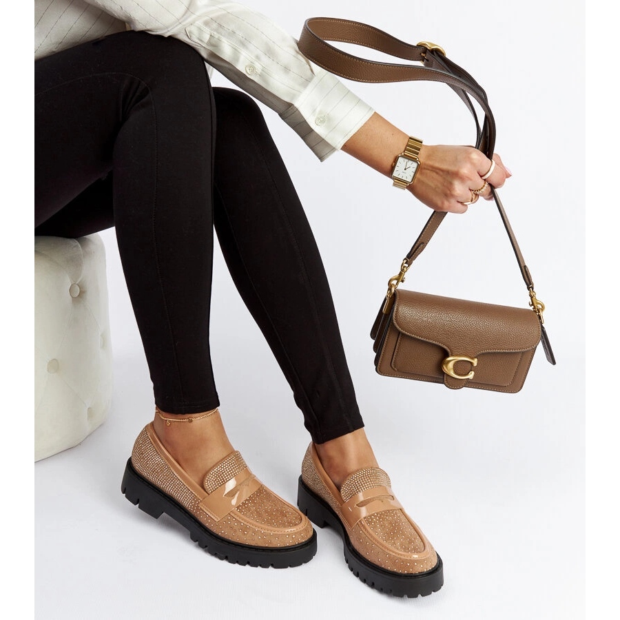 Detalii: Mocasini maro decorati cu strasuri Newport