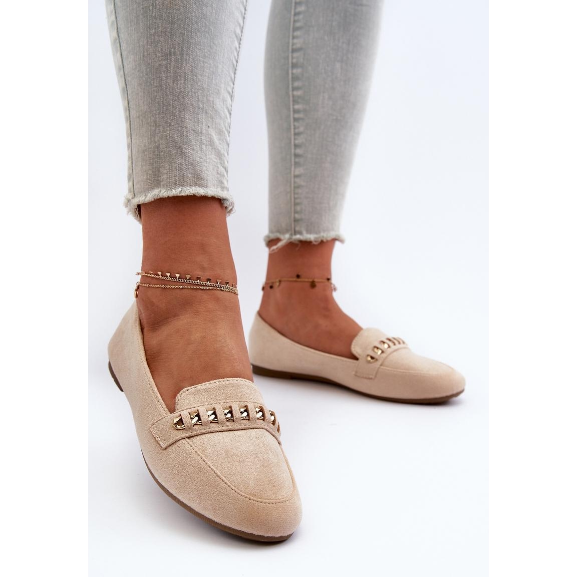 Mocasini de dama din piele intoarsa ecologica. Decorat cu ață strălucitoare și curea cu lanț. Acest model este alegerea perfectă pentru fiecare femeie elegantă. Branțul moale asigură confortul la purtare pe tot parcursul zilei. Acești mocasini vor fi o completare perfectă pentru garderoba ta de vară, adăugând farmec unic și șic oricărei ținute.