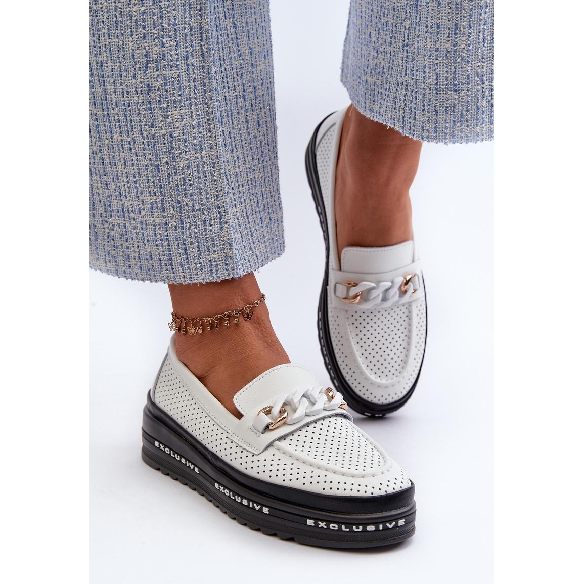 Mocasini de dama din piele naturala. Curea cu lanț în față. Montate pe o platformă, oferă o amortizare suplimentară și stabilitate în timpul mersului. Brant confortabil din piele. Acești mocasini la modă vor completa perfect diversele stiluri!