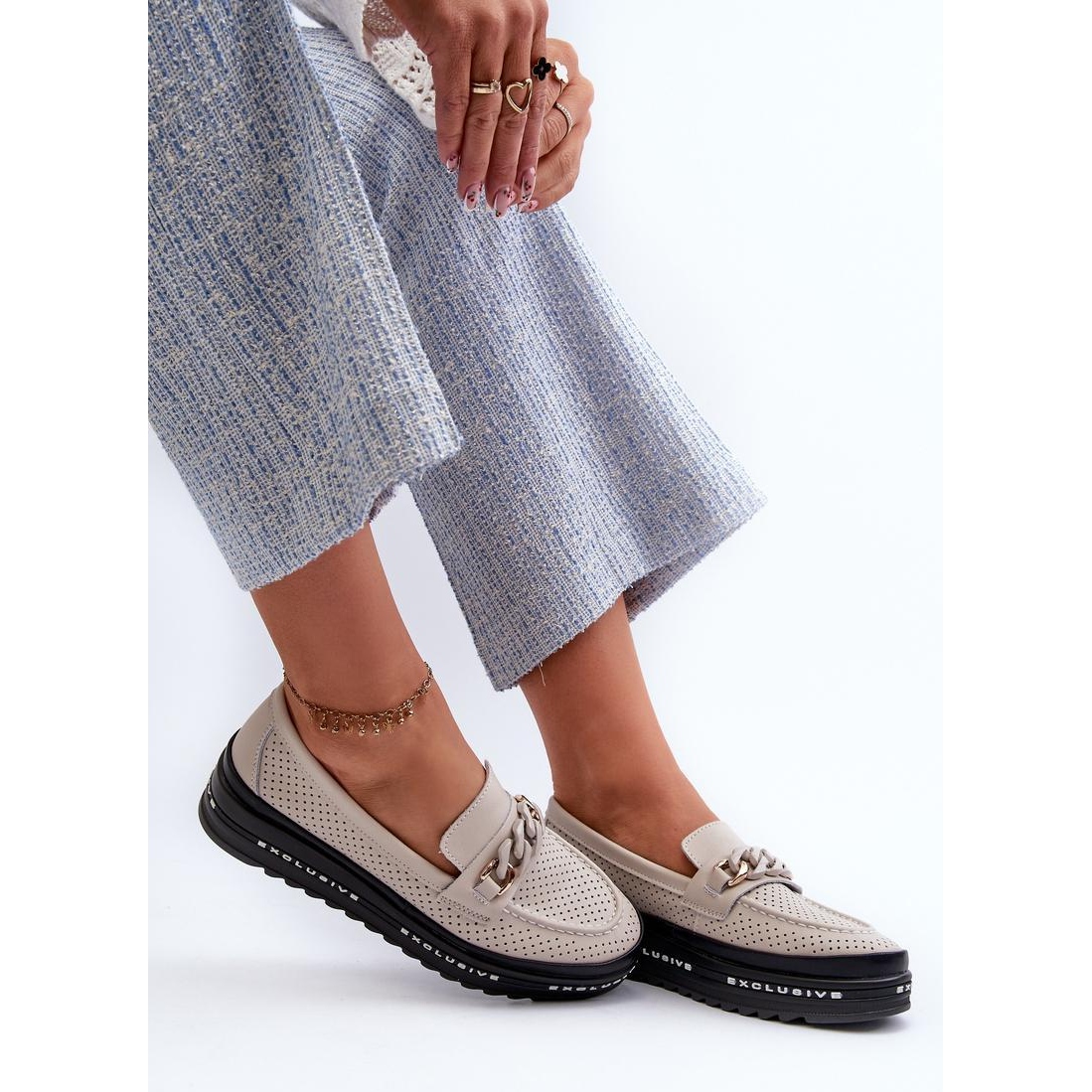 Mocasini de dama din piele naturala. Curea cu lanț în față. Montate pe o platformă, oferă o amortizare suplimentară și stabilitate în timpul mersului. Brant confortabil din piele. Acești mocasini la modă vor completa perfect diversele stiluri!