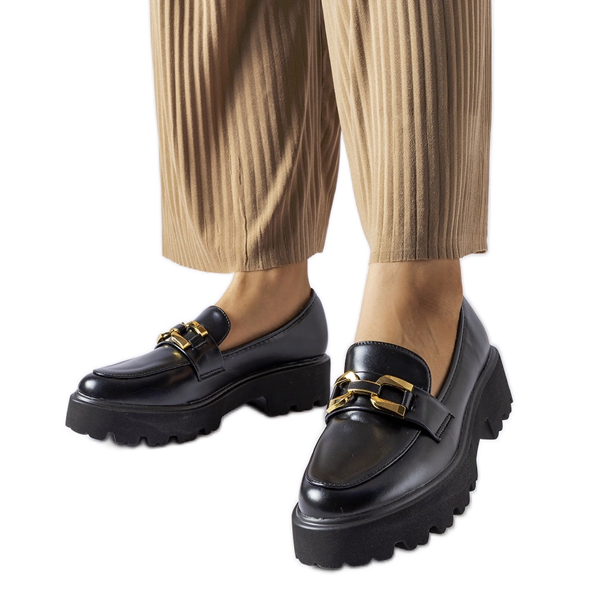 Detalii: Inna Mocasini negri de dama decorati cu catarama Piazzo negru
