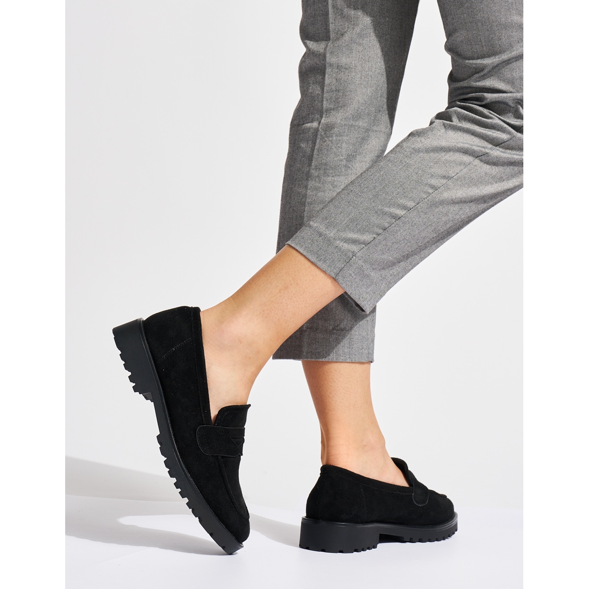 Plăcile de femei din piele de căprioară neagră sunt o alegere excelentă pentru fiecare femeie care apreciază eleganța și confortul. Fabricate din piele de piele de căprioară ecologică de înaltă calitate, acești pantofi combină designul modern cu un stil clasic. Partea interioară a mocasinilor a fost creată din combinația de piele naturală și imitația pielii, ceea ce asigură confortul purtării toată ziua.