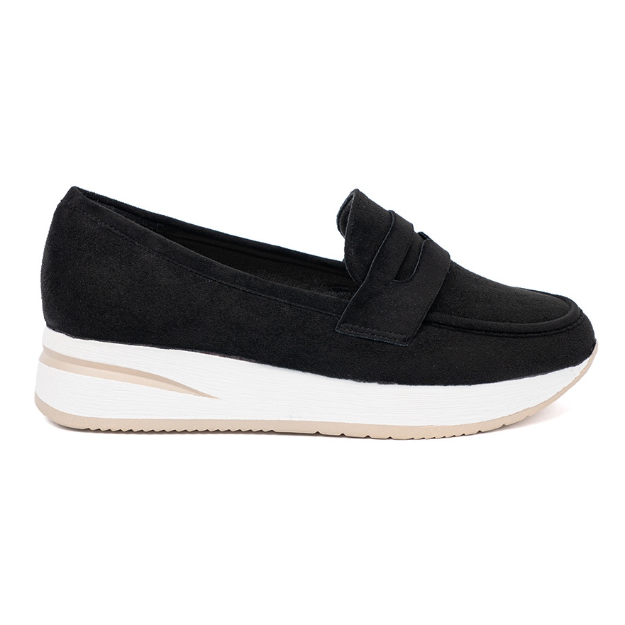 Descoperiți eleganța și comoditatea cu mocasinele negre pe platforma Shelvt. Acești pantofi eleganți, confecționate din piele de căprioară ecologică, sunt o alegere excelentă pentru fiecare sezon al anului, mai ales primăvara, vara și toamna. Aspectul lor clasic și casual le face ideale atât zilnic, cât și pentru ocazii mai elegante.