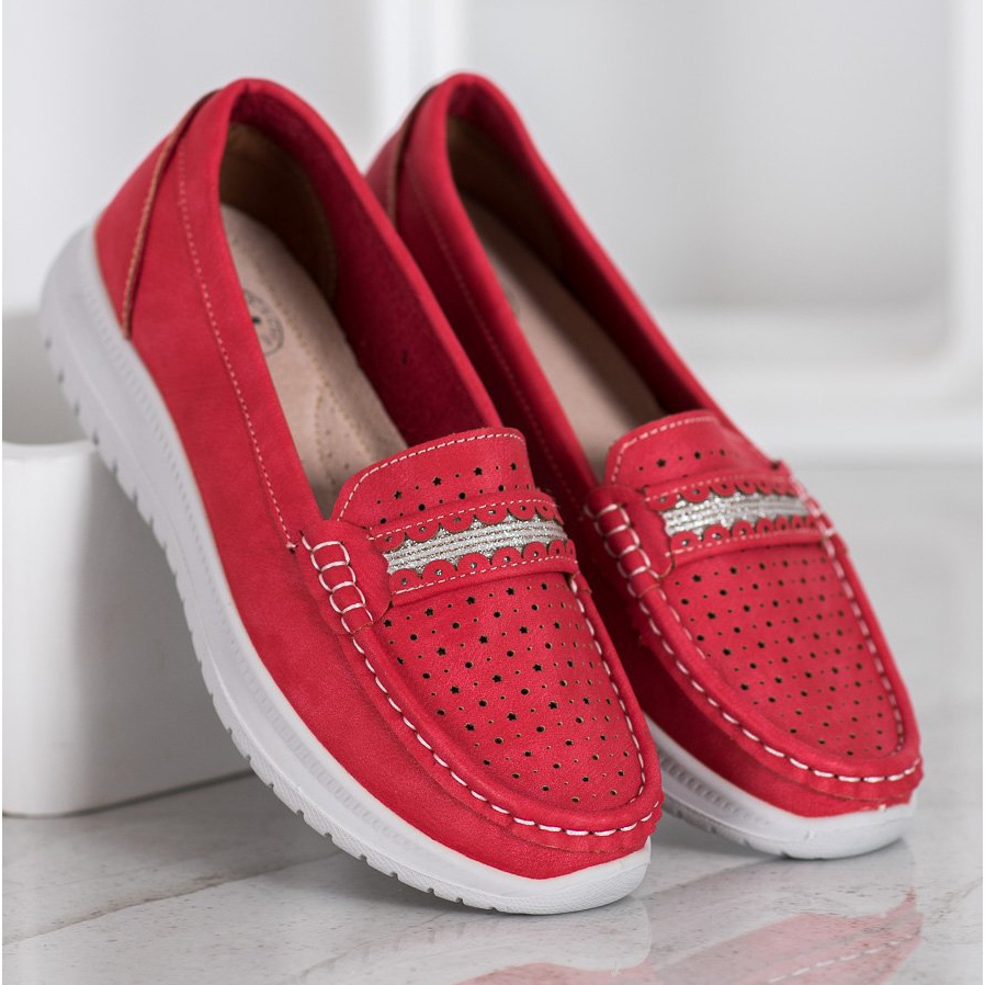 Descoperă stilul și confortul oferit de mocasinii cu platformă Small Swan într-o nuanță intensă de roșu. Acești pantofi originali sunt o alegere ideală pentru femeile care caută încălțăminte la modă și confortabilă pentru zilele de primăvară și vară. Datorită croiului lor elegant și universal, mocasinii se potrivesc perfect cu o varietate de stiluri, de la casual la mai elegant.