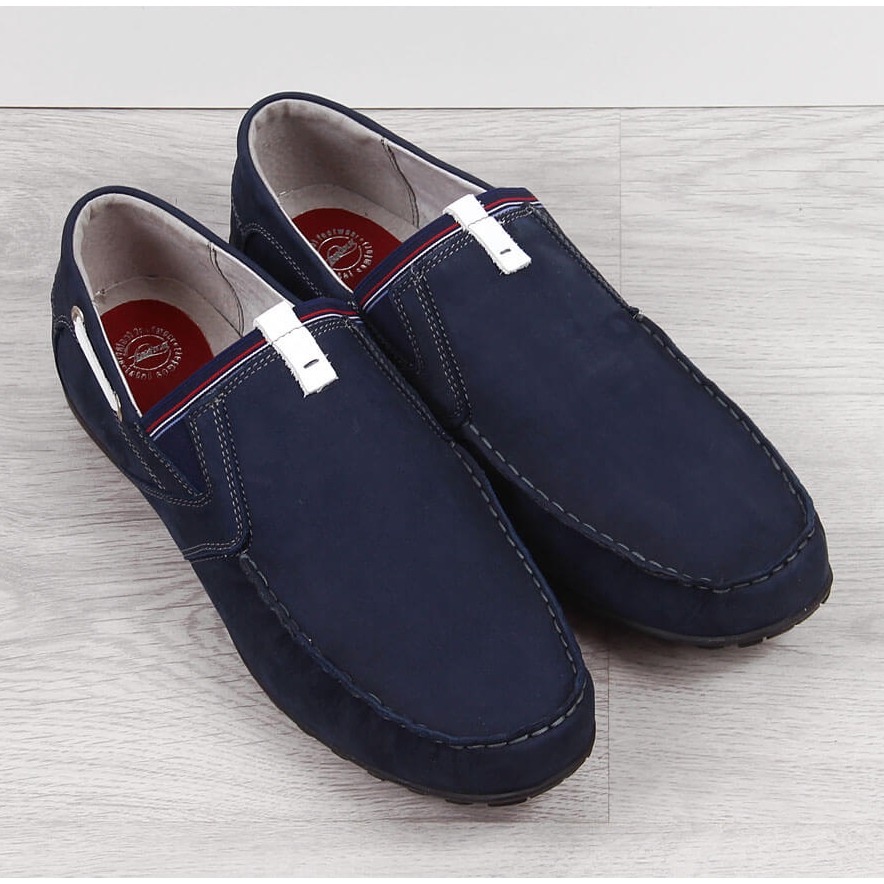 Detalii: Mocasini pentru bărbați din piele albastru bleumarin Łukbut 1800 albastru marin