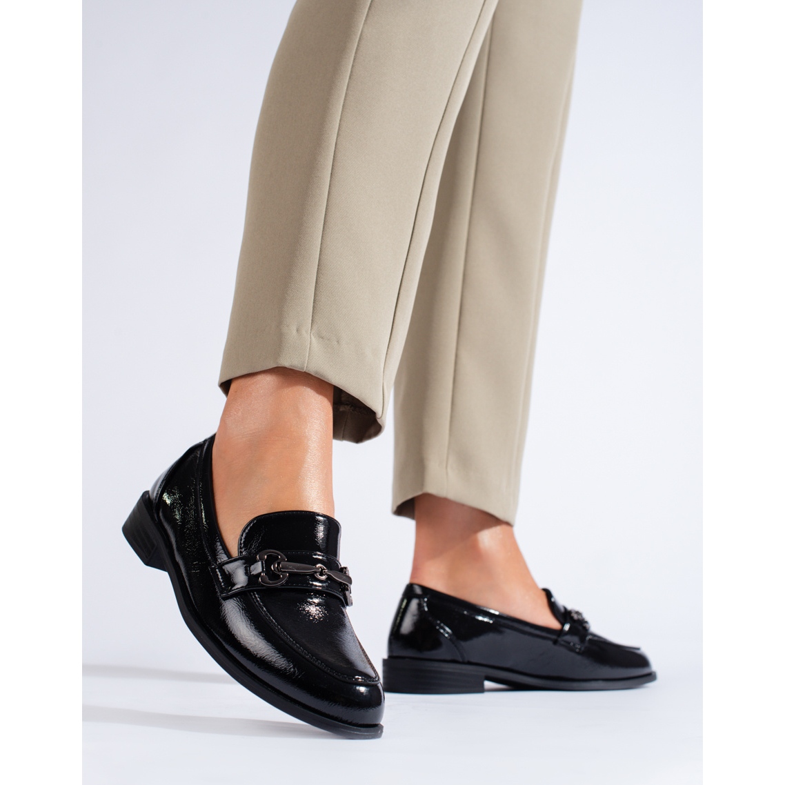Eleganti, confortabili si universali - mocasinii Shelovet negri, lacuiti, eleganti reflecta perfect ceea ce este mai bun in mocasinii de dama. Perfect pentru femeile care apreciază combinația dintre eleganță și funcționalitatea de zi cu zi într-un singur produs realizat cu atenție.