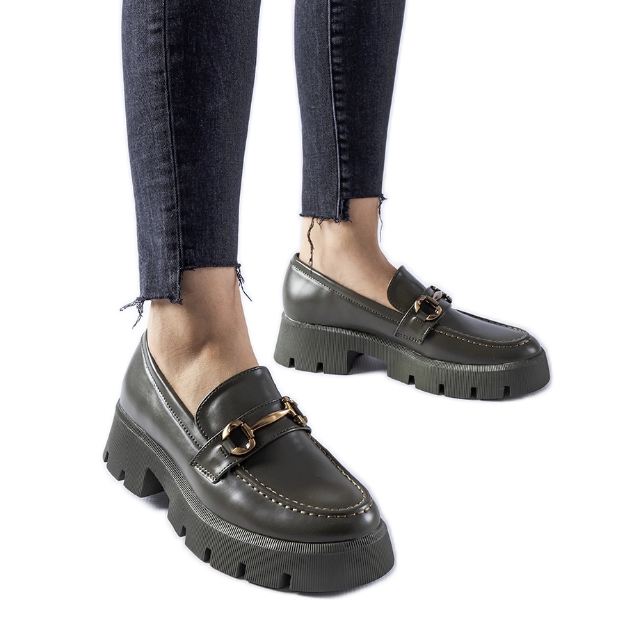Mocasinele verzi cu blametrul Crzeoho sunt o alegere excelentă pentru fiecare femeie la modă care apreciază confortul și stilul. Fabricate din piele organică de înaltă calitate, acești pantofi combină eleganța cu o abordare ecologică. Culoarea lor intensă, verde, în nuanță, Armi Green va atrage cu siguranță atenția, iar accentele aurii sub forma unui lanț adaugă un întreg personaj întregului.