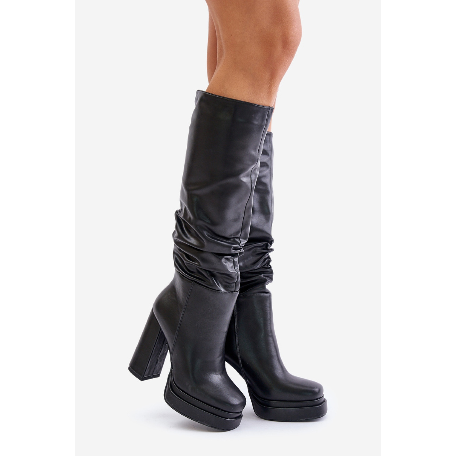 Cizmele sunt așezate pe o platformă stabilă, cu un călcâie de bară înaltă de 12,5 cm, ceea ce garantează confortul toată ziua. Datorită inserției, acestea sunt ușor de pus și de luat, ceea ce le face alegerea perfectă pentru orice ocazie.
