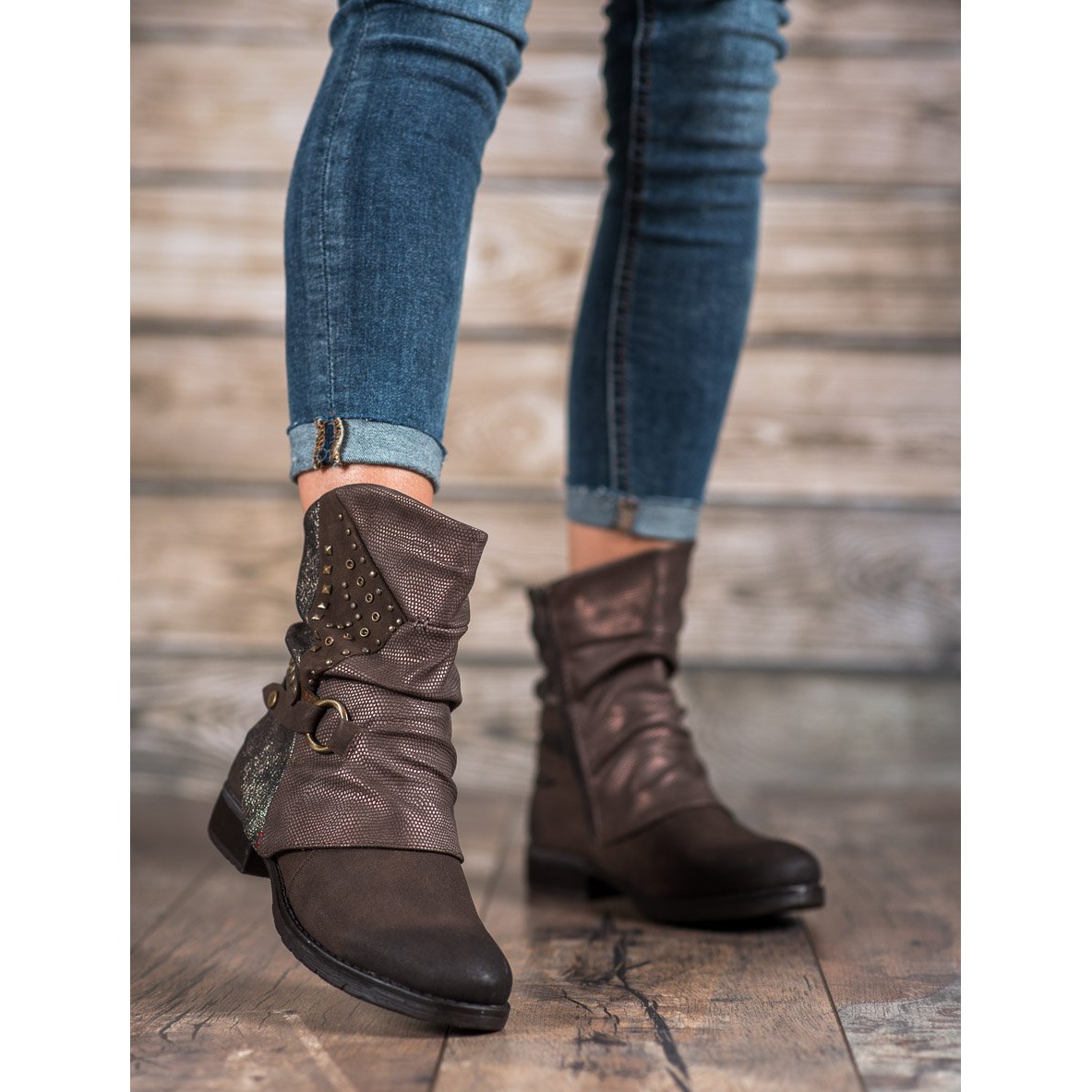 Va prezentam motociclisti maro eleganti si stilati de la marca Super Me, care sunt complementul perfect pentru garderoba oricarei femei. Aceste cizme unice se caracterizează printr-o combinație neobișnuită de materiale cu texturi diferite, ceea ce le face un plus original pentru multe stiluri.