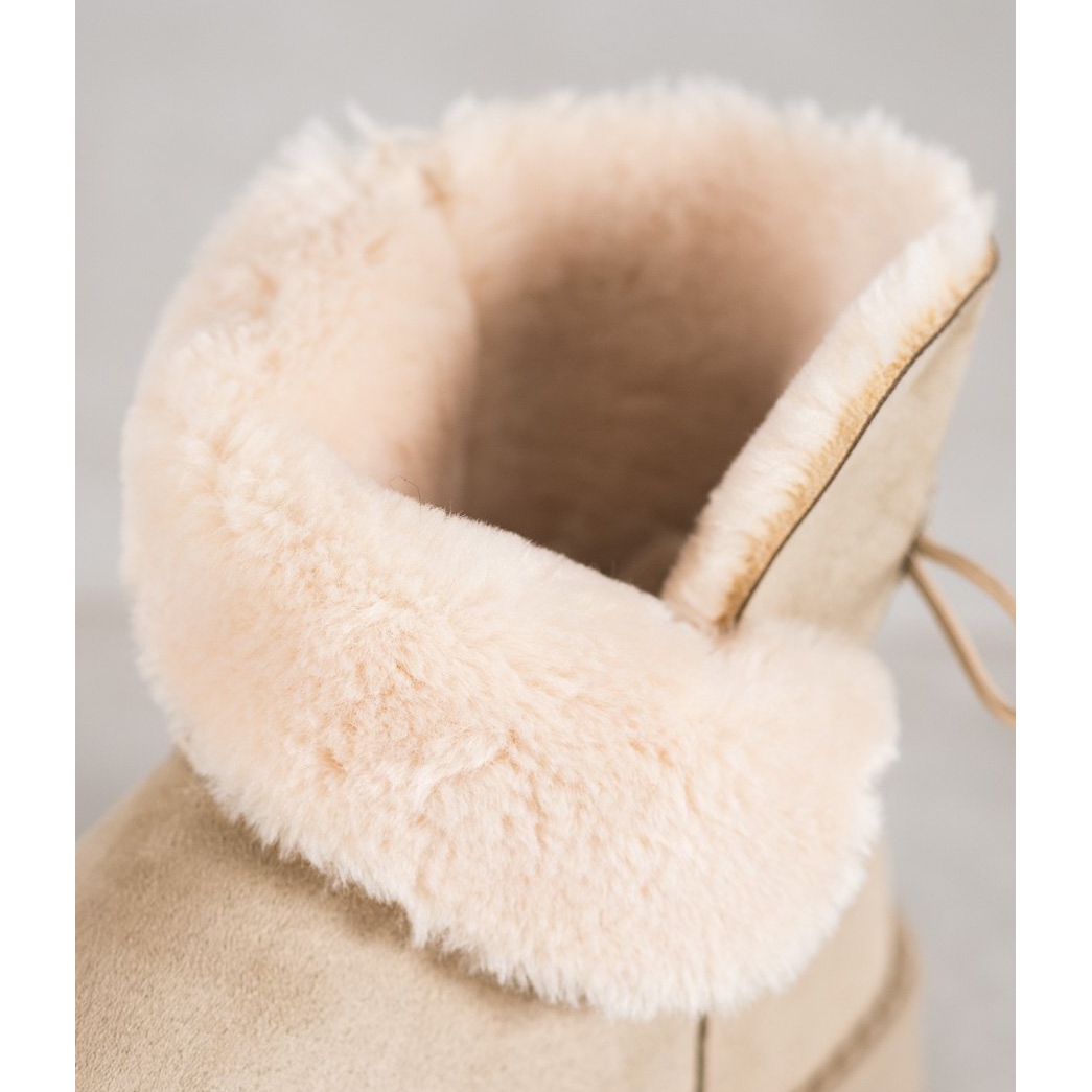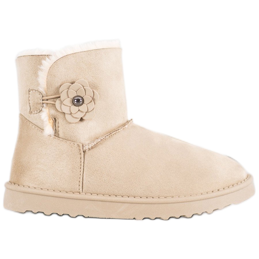 Mukluks cu o floare de la marca SHELOVET sunt alegerea perfecta pentru fiecare femeie care vrea sa combine confortul cu designul la moda. Realizate din piele intoarsa ecologica intr-o frumoasa nuanta de maro, aceste cizme de zapada se potrivesc perfect intr-un stil casual pentru zilele mai reci. Fața lor până la gleznă asigură o izolare optimă, iar blana interioară face ca purtarea lor să fie o plăcere extraordinară.