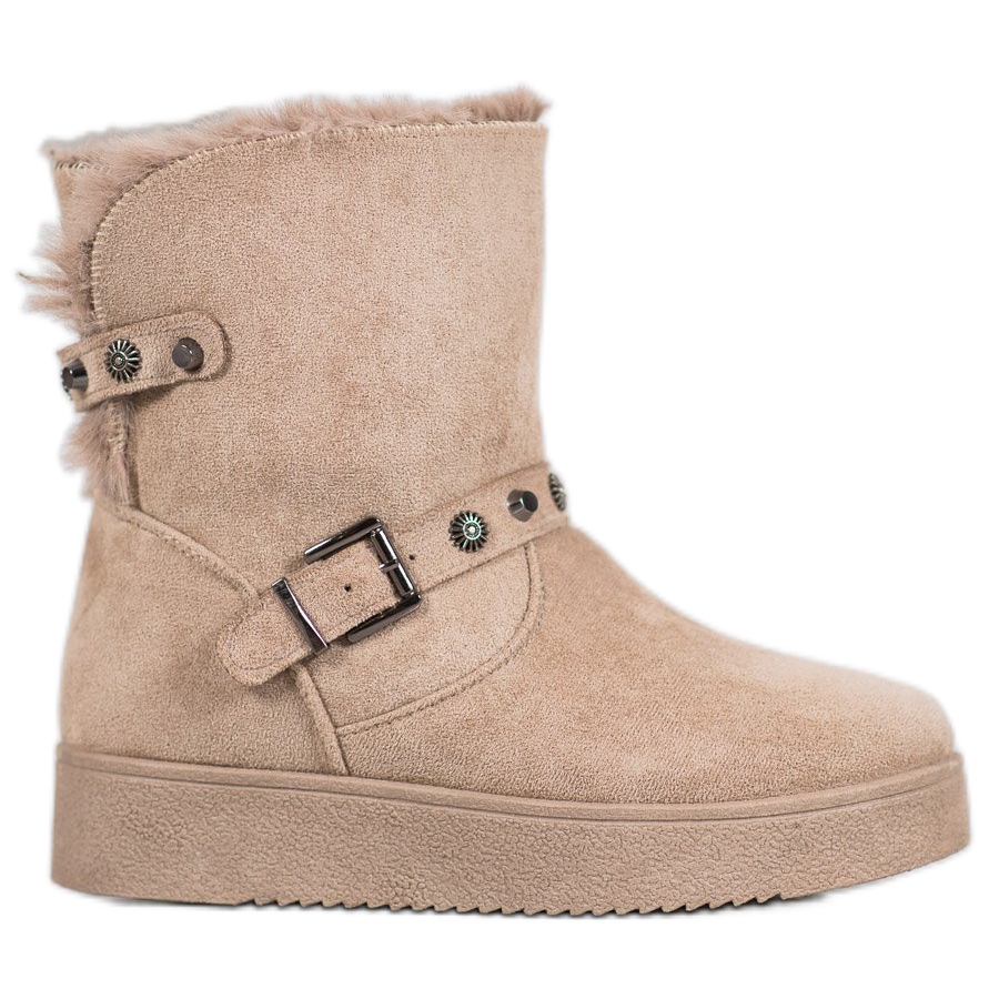 Va prezentam SHELOVET Mukluki cu jeturi intr-o nuanta eleganta de maro deschis - cizme de zapada perfecte pentru fiecare femeie care apreciaza confortul si stilul in acelasi timp. Acesti pantofi unici au fost confectionati cu grija din piele intoarsa ecologica de inalta calitate, care asigura nu doar un aspect atractiv, ci si durabilitate.