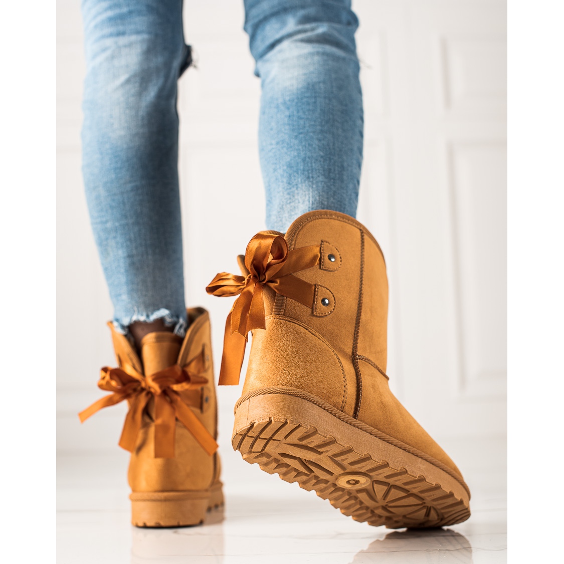 Detalii: TRENDI Mukluki cu un arc galben