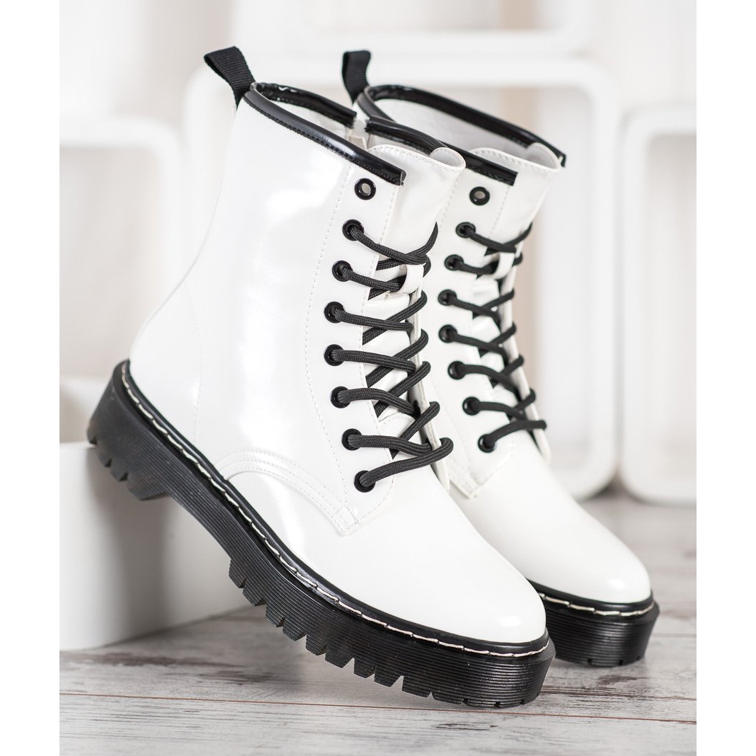 Cizmele albe pentru muncitori Vinceza sunt o propunere pentru femeile care doresc să iasă în evidență din mulțime. Datorită culorii universale și modelului simplu, acești pantofi se potrivesc perfect cu diverse stiluri - de la casual la mai rock. Vor fi, fără îndoială, un accent la modă în orice garderobă!