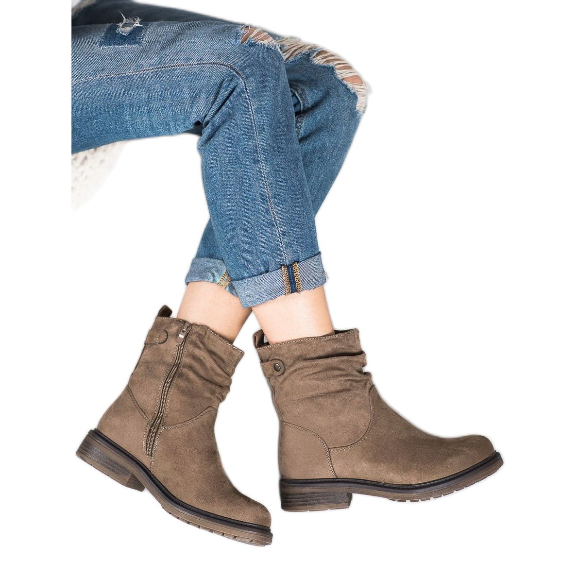 Descopera eleganta si confortul cu cizmele maro pentru muncitori de la J. Star, care se vor potrivi perfect in garderoba ta de toamna-iarna. Aceste botine de dama stilate, din piele intoarsa maro deschis, bej, se remarca nu numai prin estetica, ci si prin functionalitate.
